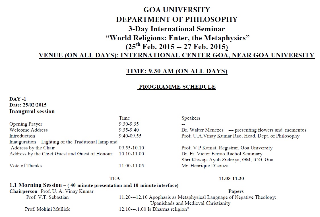 This 3-Day Seminar starts at 9:30am on 25th Feb’15 at ICG, Donna Paula – Goa, India. A delegates pass costs Rs. 2000, tea & snacks, lunch included. If you are interested in attending, show up on time. Complete content of the seminar is given below.
